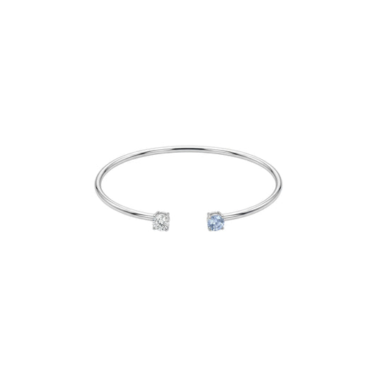 14Kt Gold Simulated Aquamarine and Lab Grown Diamond Open Cuff Bangle