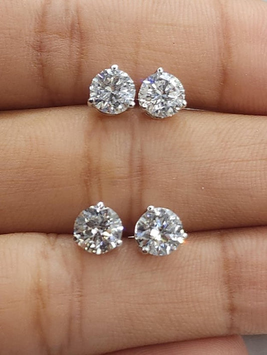 18Kt Gold 3 Ct 3 Prong Lab Grown Martini Diamond Studs Earrings