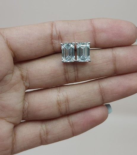 18Kt Gold 4 Ct Emerald Cut Lab Grown Diamond Studs Earrings