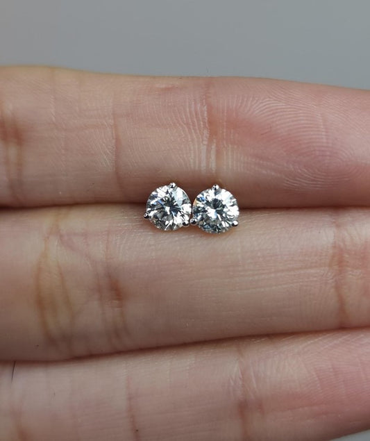 18Kt Gold 1 Ct 3 Prong Martini Lab Grown Diamond Studs Earrings