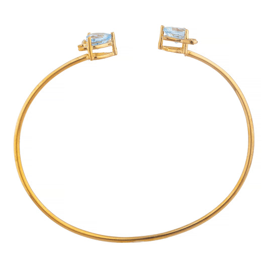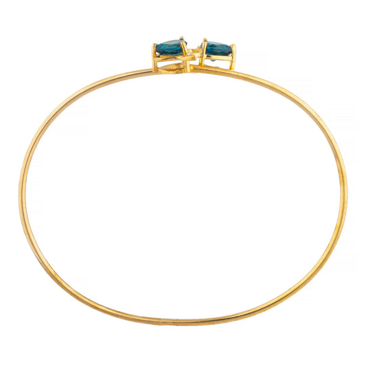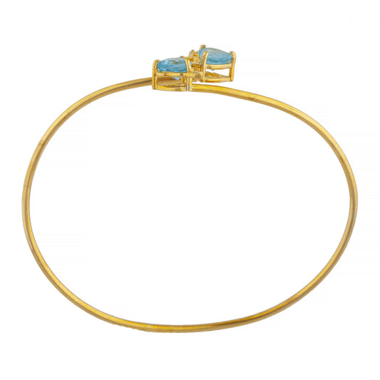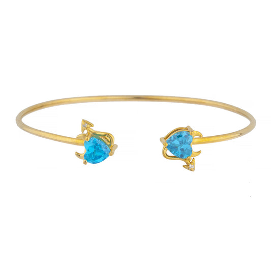 14Kt Gold Swiss Blue Topaz & Diamond Devil Heart Bangle Bracelet