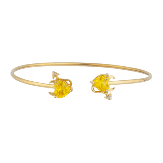 14Kt Gold Yellow Citrine & Diamond Devil Heart Bangle Bracelet