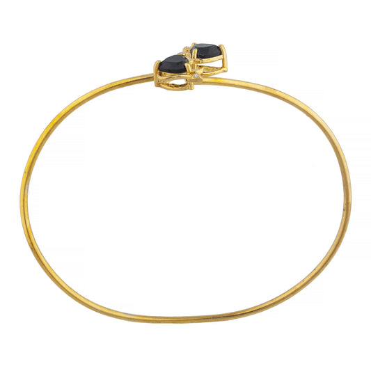14Kt Gold Genuine Black Onyx & Diamond Devil Heart Bangle Bracelet