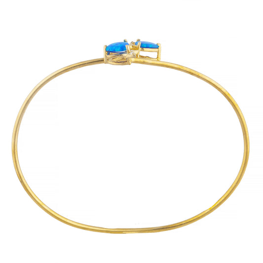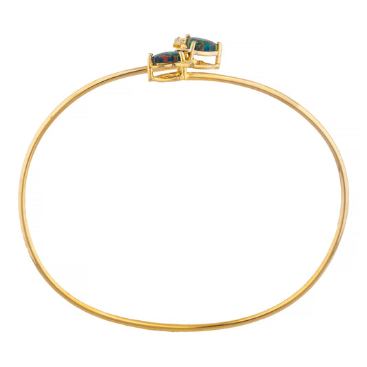 14Kt Gold Blue Opal & Diamond Devil Heart Bangle Bracelet