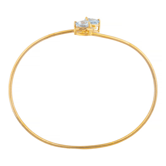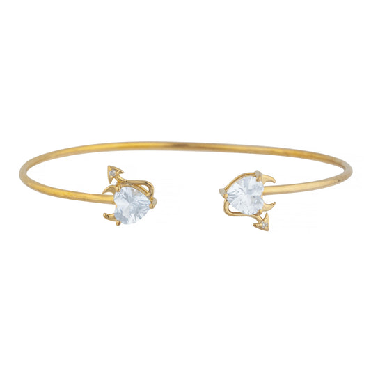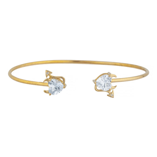 14Kt Gold Genuine Aquamarine & Diamond Devil Heart Bangle Bracelet