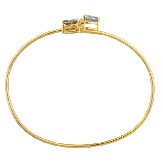 14Kt Gold Natural Mystic Topaz & Diamond Devil Heart Bangle Bracelet