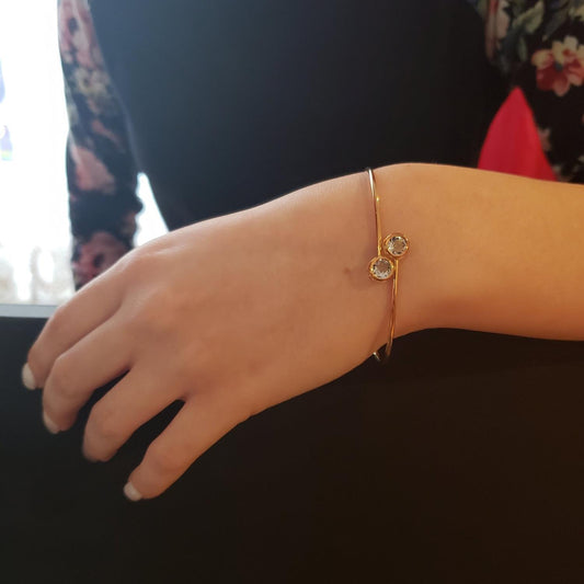 14Kt Gold Aquamarine Round Bezel Bangle Bracelet