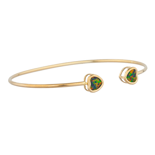 14Kt Gold Black Opal Heart Bezel Bangle Bracelet