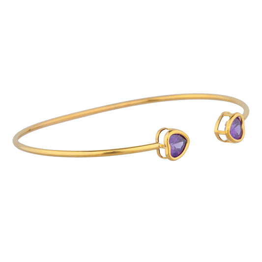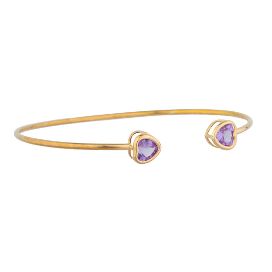 14Kt Gold Amethyst Heart Bezel Bangle Bracelet