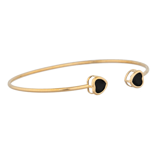 14Kt Gold Genuine Black Onyx Heart Bezel Bangle Bracelet