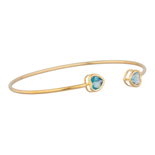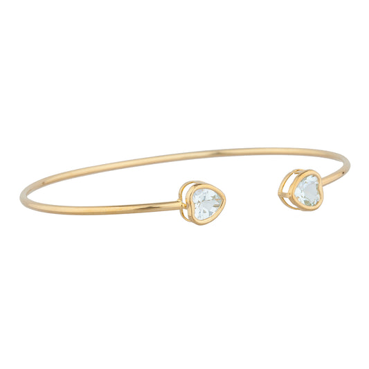 14Kt Gold Genuine Aquamarine Heart Bezel Bangle Bracelet