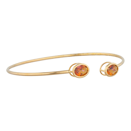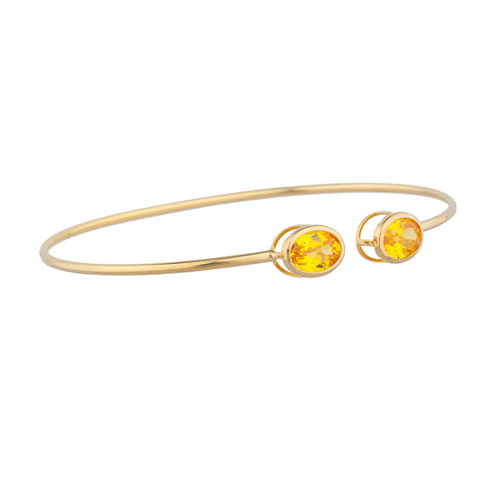 14Kt Gold Yellow Citrine Oval Bezel Bangle Bracelet