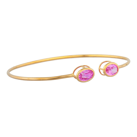 14Kt Gold Pink Sapphire Oval Bezel Bangle Bracelet
