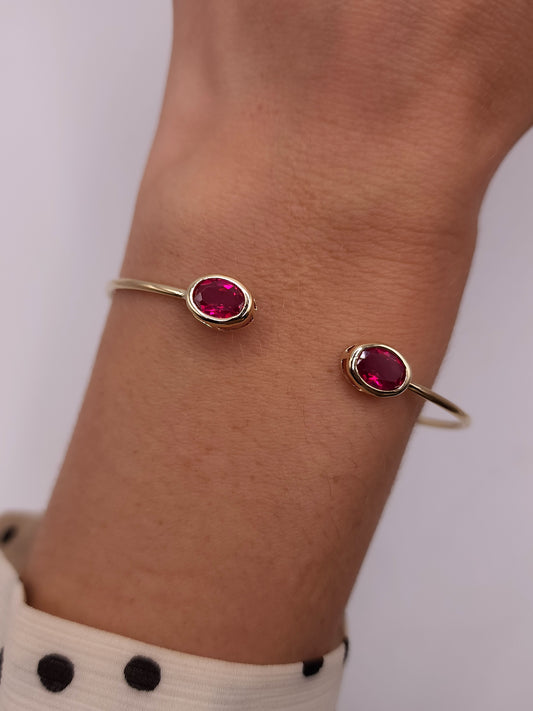 14Kt Gold Created Ruby Oval Bezel Bangle Bracelet