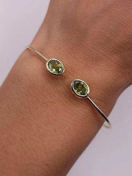 14Kt Gold Peridot Oval Bezel Bangle Bracelet
