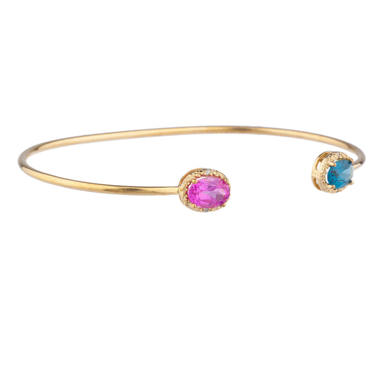 14Kt Gold Pink Sapphire & London Blue Topaz Diamond Oval Bangle Bracelet