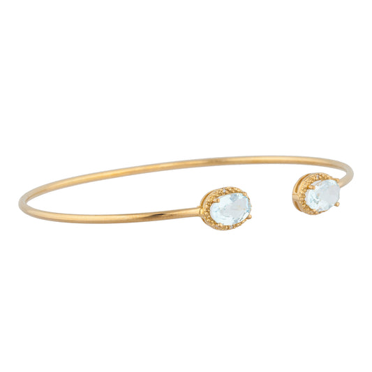 14Kt Gold Genuine Aquamarine & Diamond Oval Bangle Bracelet