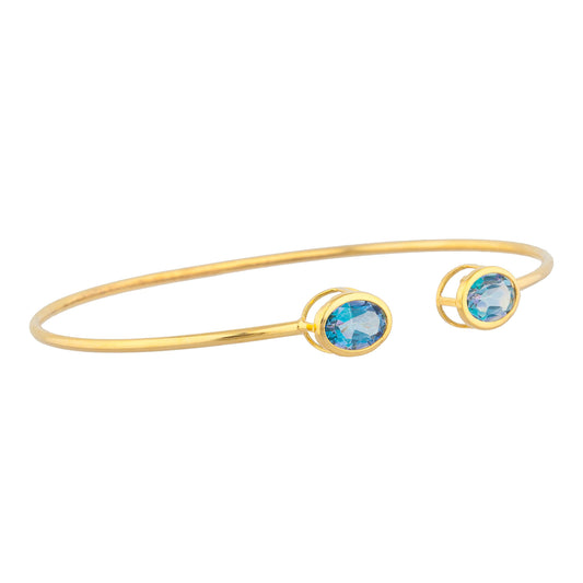 14Kt Gold Natural Blue Mystic Topaz Oval Bezel Bangle Bracelet