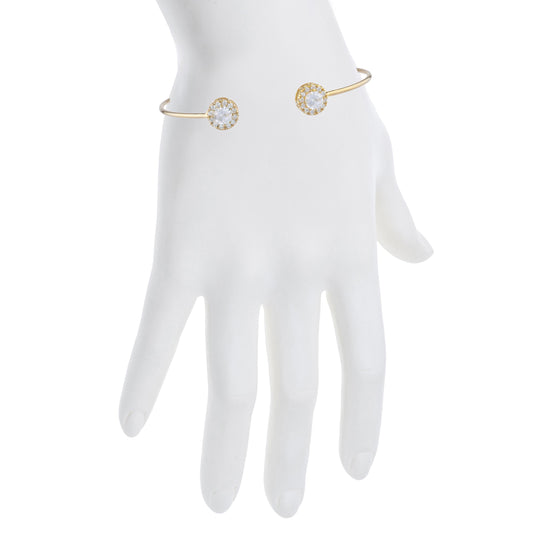 14Kt Gold White Sapphire Halo Design Bangle Bracelet