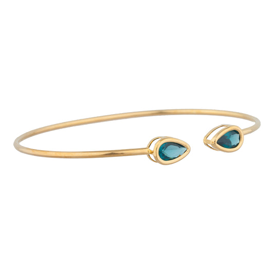 14Kt Gold Blue Topaz Pear Bezel Bangle Bracelet