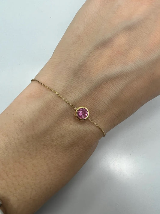 14Kt Gold Pink Sapphire Bezel Bracelet