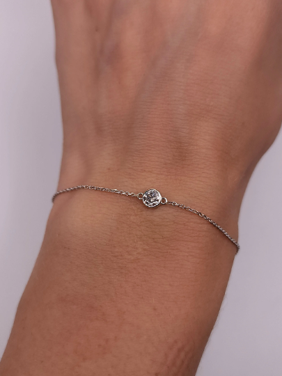 14Kt Gold Aquamarine Halo Round Bracelet