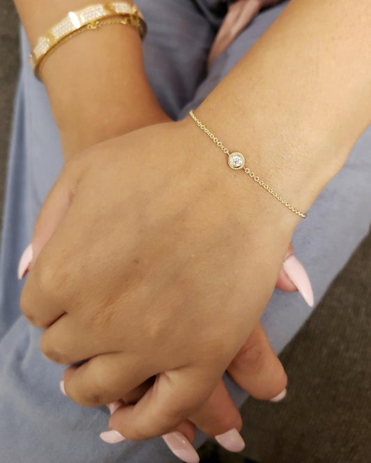 14Kt Gold 0.15 Ct Genuine Natural Diamond Bezel Bracelet