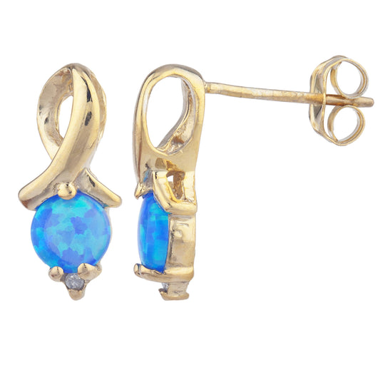 14Kt Gold Blue Opal & Diamond Round Design Stud Earrings