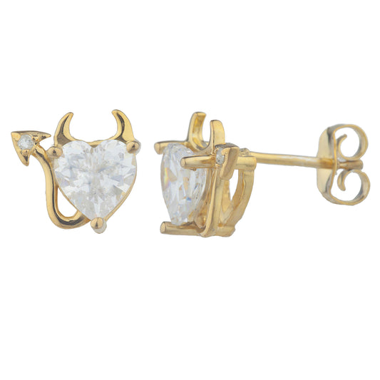 14Kt Gold Zirconia & Diamond Devil Heart Stud Earrings