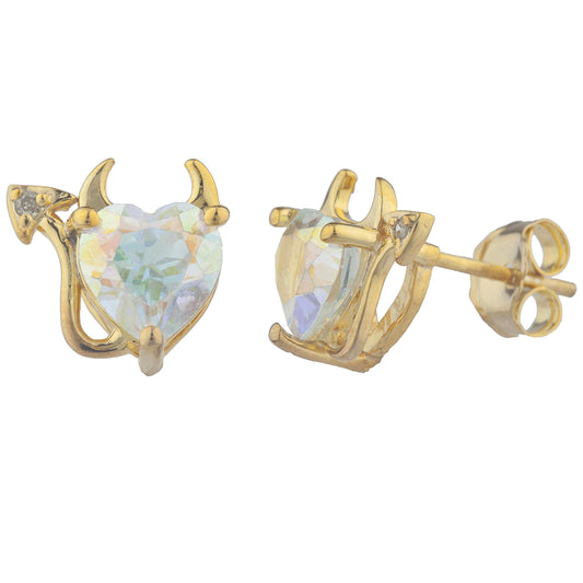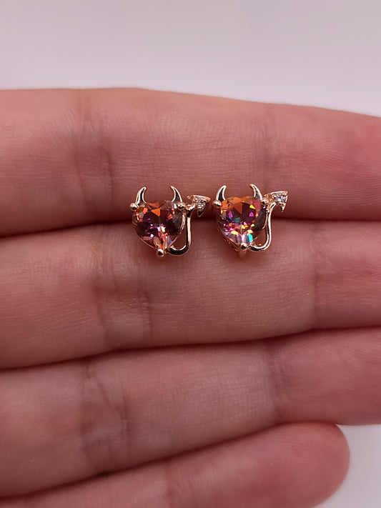 14Kt Gold Natural Ecstasy Mystic Topaz & Diamond Devil Heart Stud Earrings