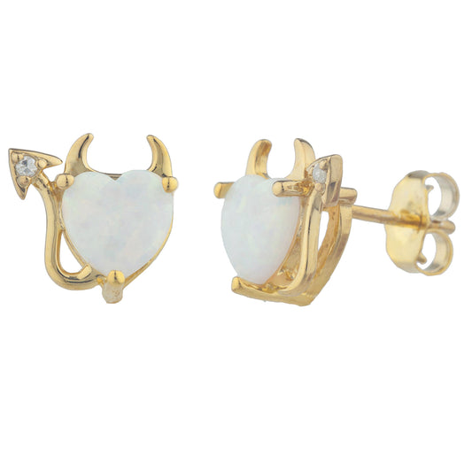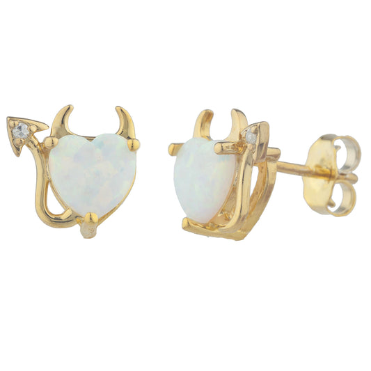 14Kt Gold Genuine Opal & Diamond Devil Heart Stud Earrings