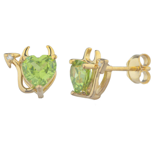 14Kt Gold Peridot & Diamond Devil Heart Stud Earrings