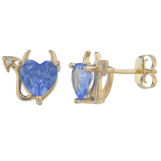 14Kt Gold Tanzanite & Diamond Devil Heart Stud Earrings