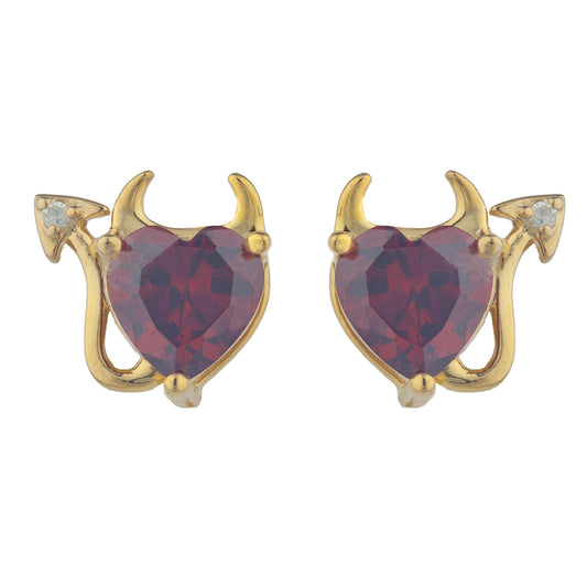 14Kt Gold Garnet & Diamond Devil Heart Stud Earrings