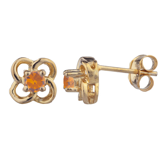 14Kt Gold Orange Citrine Love Knot Stud Earrings