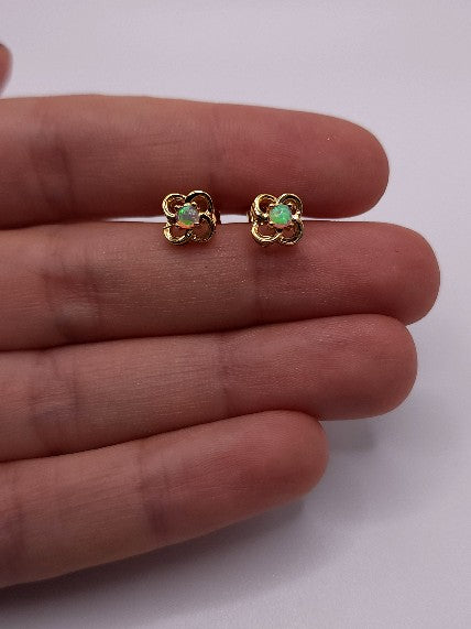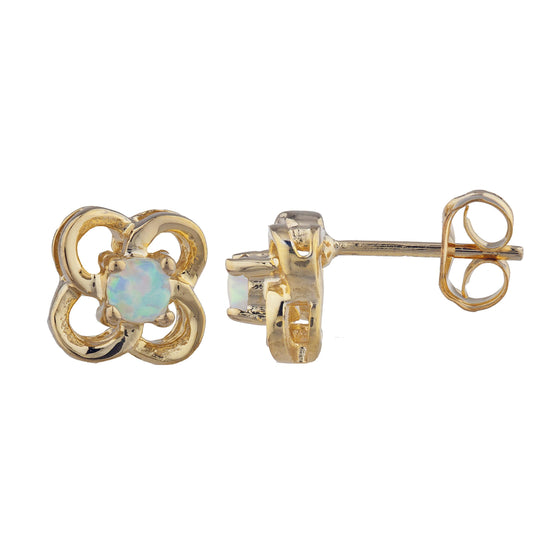 14Kt Gold Genuine Opal Love Knot Stud Earrings