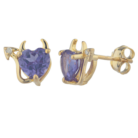 14Kt Gold Amethyst & Diamond Devil Heart Stud Earrings