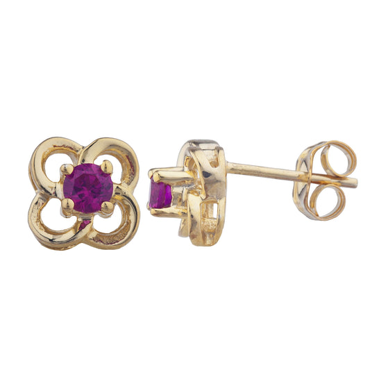 14Kt Gold Created Ruby Love Knot Stud Earrings