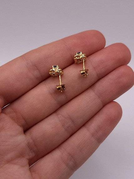 14Kt Gold Genuine Aquamarine & Diamond Devil Heart Stud Earrings