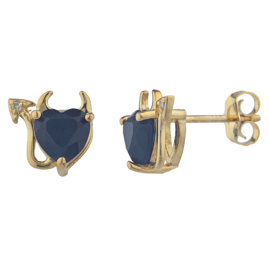 14Kt Gold Blue Sapphire & Diamond Devil Heart Stud Earrings