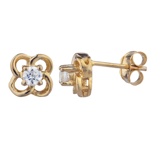 14Kt Gold Zirconia Love Knot Stud Earrings