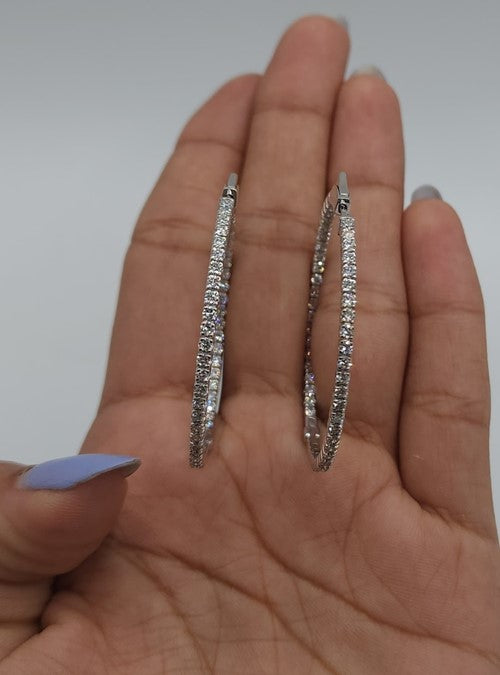 14Kt Gold 4.20 Ct Lab Grown Diamond Inside & Outside Huggie Hoop Earrings
