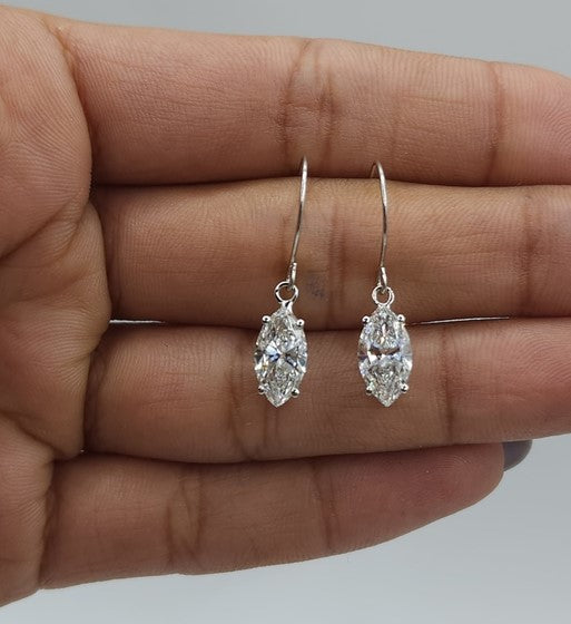 14Kt Gold 2 Ct Lab Grown Marquise Diamond Dangle Earrings