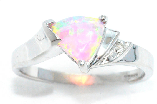 14Kt Gold Pink Opal & Diamond Trillion Ring