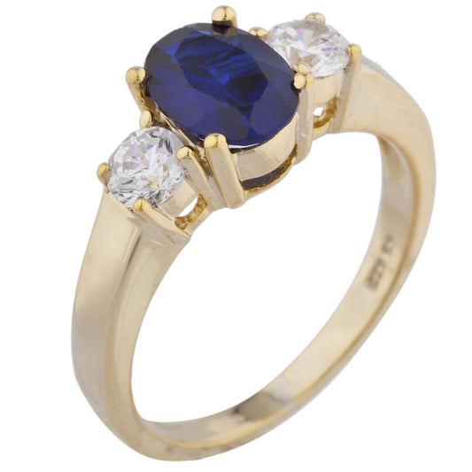 14Kt Gold 2 Ct Blue Sapphire & Zirconia Oval Ring