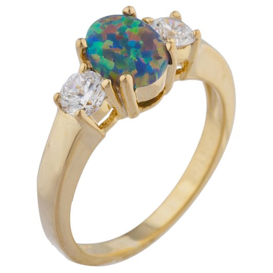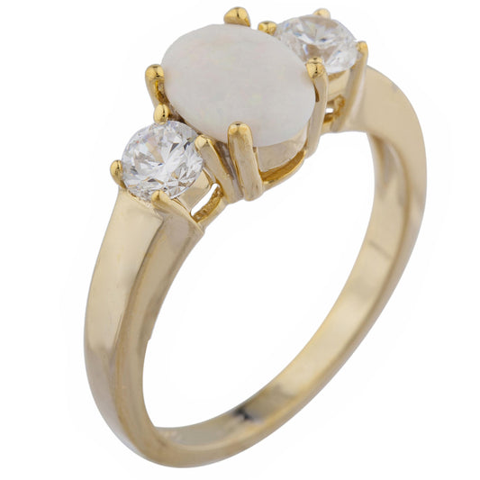 14Kt Gold Genuine Opal & Zirconia Oval Ring