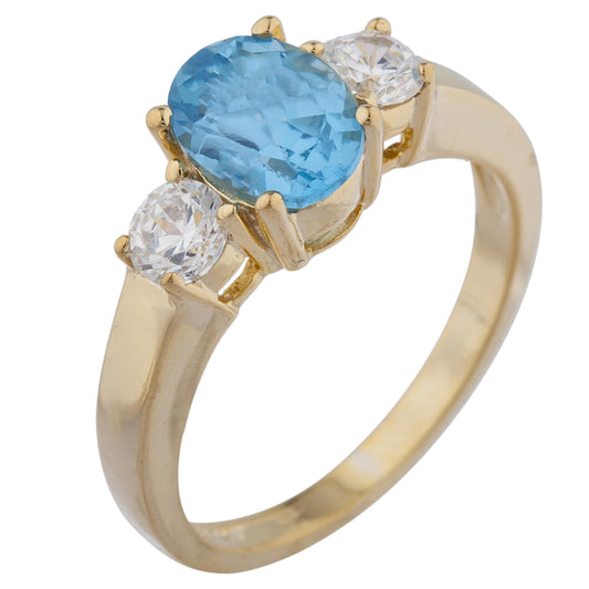 14Kt Gold 2 Ct Blue Topaz & Zirconia Oval Ring
