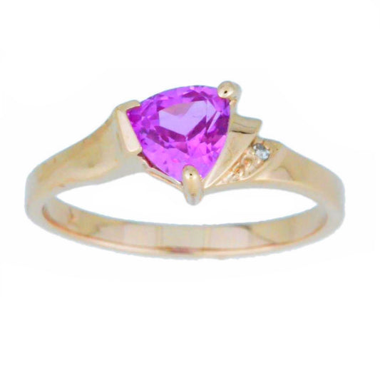 14Kt Gold Pink Sapphire & Diamond Trillion Ring
