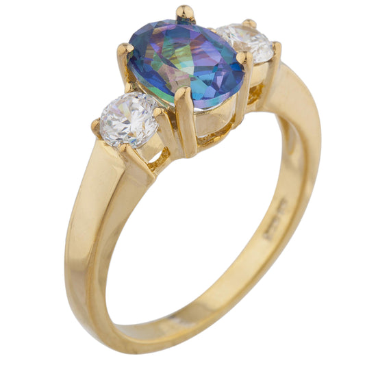 14Kt Gold 2 Ct Natural Blue Mystic Topaz & Zirconia Oval Ring