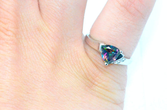 14Kt Gold Natural Mystic Topaz & Diamond Trillion Ring